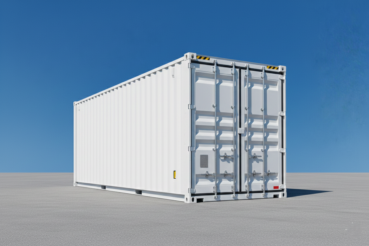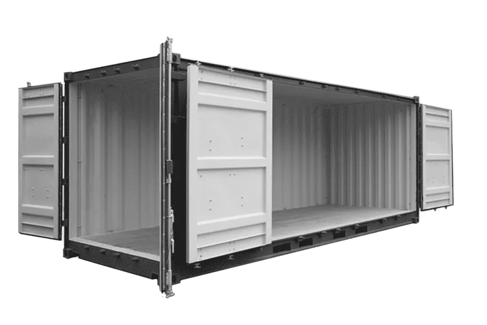 Contêiner marítimo High Cube de 40 pés (12,2 metros) com 4 portas laterais.
