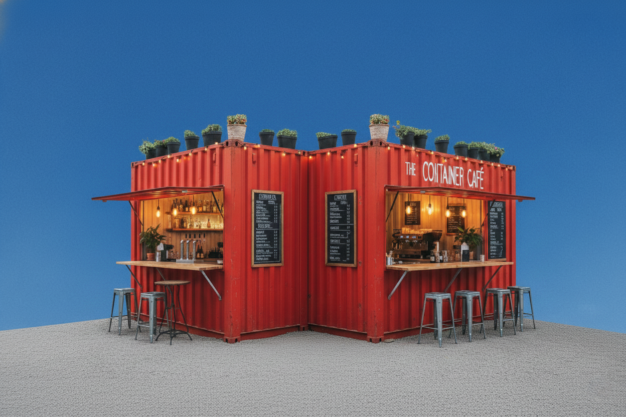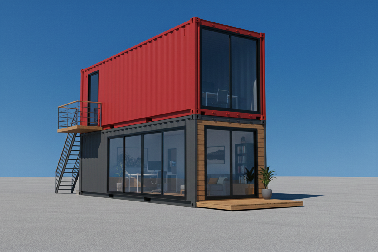 Contêiner e bangalô no local