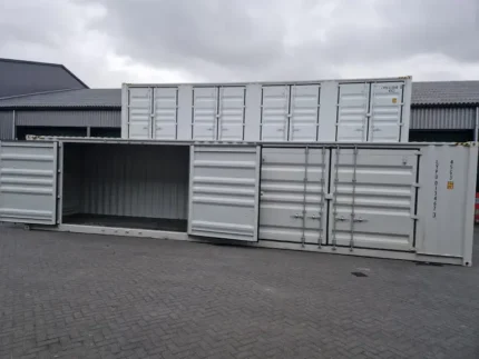 Contêiner marítimo High Cube de 40 pés (12,2 metros) com 4 portas laterais.