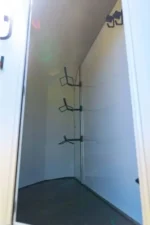 Ampla sala de arreios integrada com porta separada para lembranças, equipamentos, selas e acessórios.