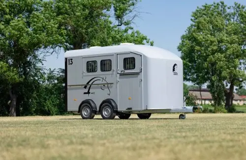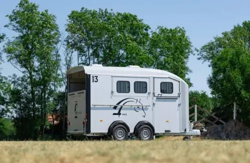 O Cheval Liberté Maxi 3 é um reboque para cavalos totalmente novo , especialmente projetado para transportar 3 cavalos em configuração diagonal (oblíqua ou em espinha de peixe). Essa disposição melhora o conforto e a segurança dos cavalos durante o embarque e o transporte .