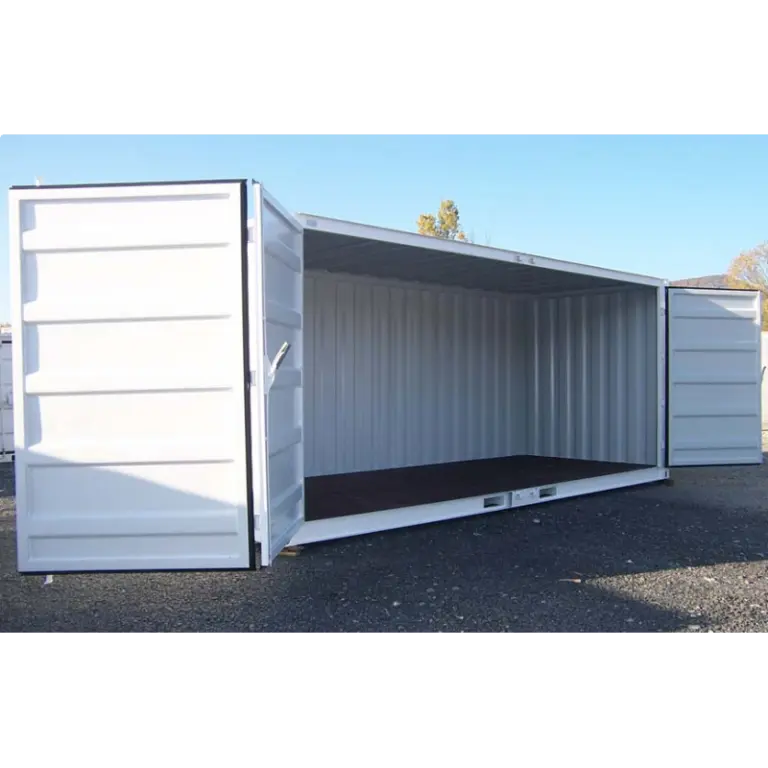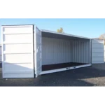 O contêiner marítimo Open Side (OS) de 20 pés possui uma abertura lateral total ou parcial, permitindo fácil acesso ao seu conteúdo. A porta original permanece acessível e funcional. A abertura geralmente consiste em uma porta dupla. Ela abre completamente, é rígida e não possui batente central.