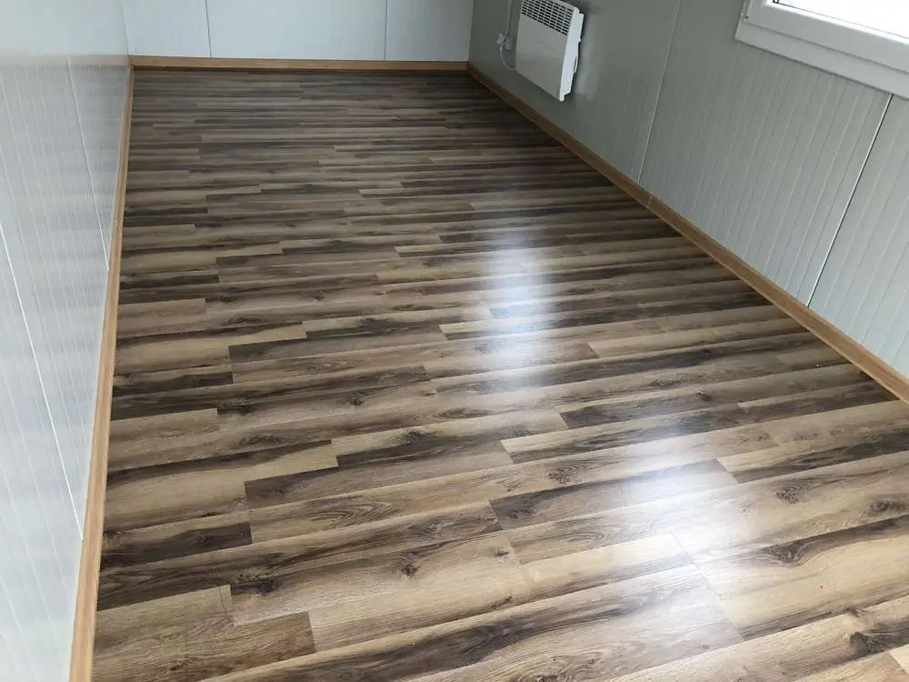 Descrição Isolamento de parede padrão em fibra de vidro Piso de madeira-cimento de 22 mm com revestimento de PVC 1