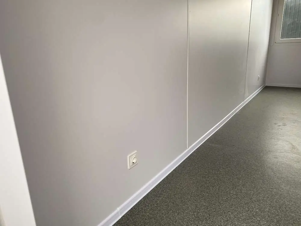 Contêiner de escritório de 3 metros x 2 metros, 2,70 metros de altura com 2 janelas. – paredes e elementos sanduíche, isolamento do telhado 7,5 cm. – 2 janelas basculantes (vidro duplo) – Perfil sanduíche com isolamento térmico para baixa perda de energia – Porta de entrada com isolamento térmico (vidro duplo) – Instalação elétrica completa em conformidade com a diretiva CE – Tomadas de 230V – 1 luminária de teto Piso laminado, resistente e fácil de limpar. – Piso isolado internamente com painéis de OSB – radiador de parede elétrico – descarregar ilhós com guindaste e guia de empilhadeira na parte inferior – Construção com estrutura de aço soldada, autossustentável e estável. A entrega é possível e pode ser mais barata do que o indicado. Podemos produzir outros tamanhos e em outras cores de acordo com as suas especificações.