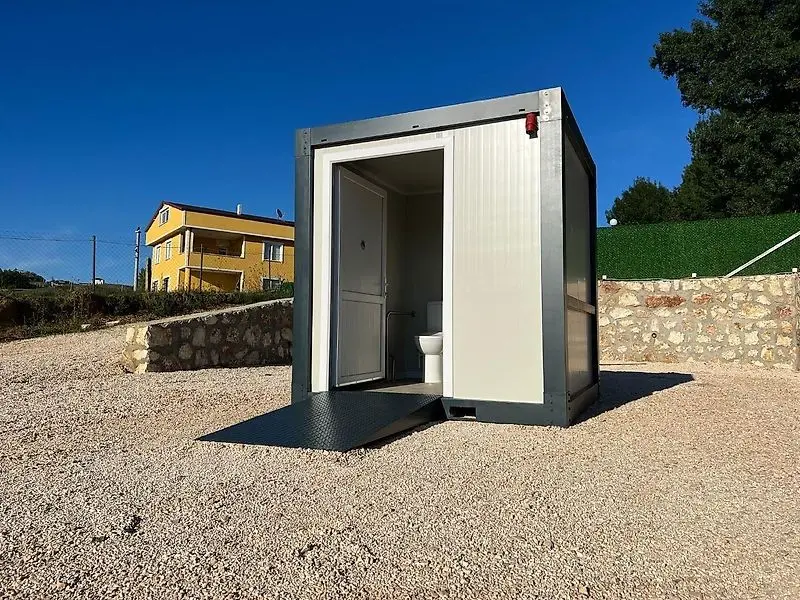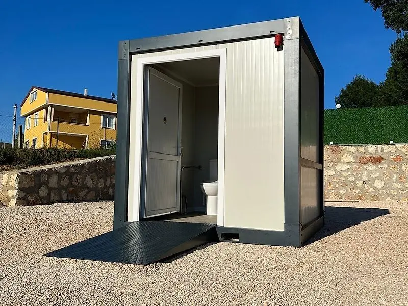 O contêiner sanitário acessível 2025, com dimensões de 220 x 220 cm, é uma solução moderna, segura e acessível, projetada para oferecer o máximo conforto a pessoas com mobilidade reduzida. Compacto e autossuficiente, pode ser facilmente instalado em canteiros de obras, eventos, espaços públicos ou locais temporários .