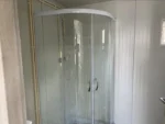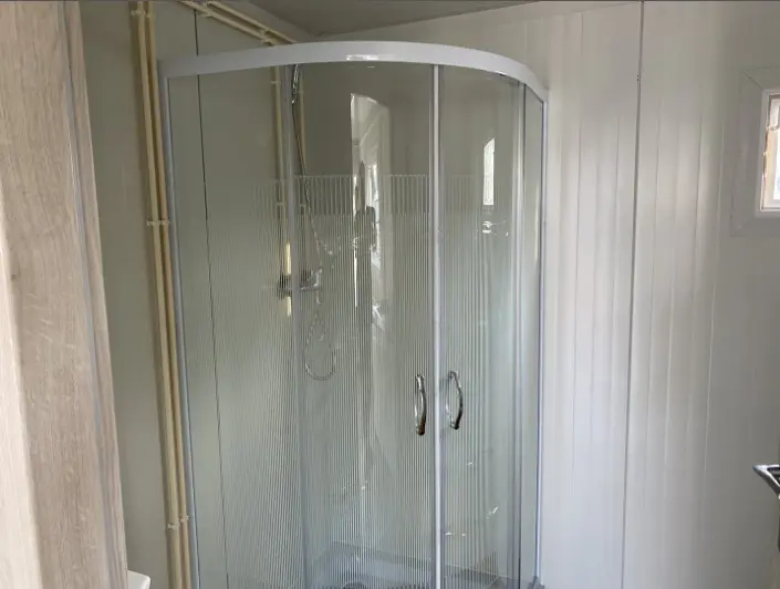 Porta de entrada principal e possivelmente portas internas que separam o banheiro do chuveiro.