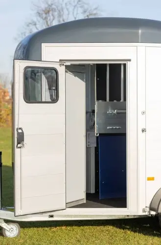 • Porta de inspeção:  A porta de inspeção permite monitorar facilmente seus cavalos e fornecer-lhes os cuidados necessários durante a viagem.