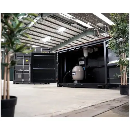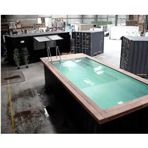 Piscina externa feita a partir de um contêiner marítimo de 40 pés , modificado e pré-fabricado em fábrica . Estrutura de aço reforçado, design móvel ,