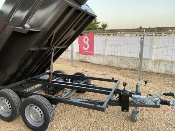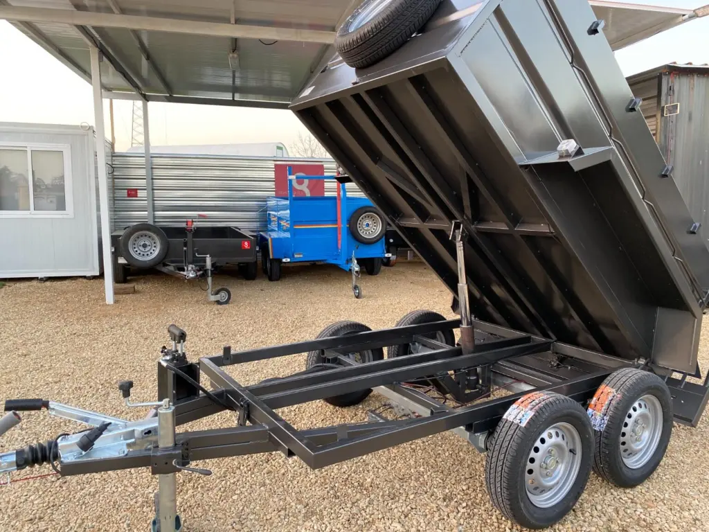 Um reboque basculante hidráulico é um veículo utilitário rebocado, projetado para transportar materiais a granel (areia, cascalho, terra, resíduos, etc.) e descarregá-los facilmente graças a um sistema de basculamento acionado por um cilindro hidráulico . Isso economiza tempo e reduz o esforço físico em comparação com o descarregamento manual.