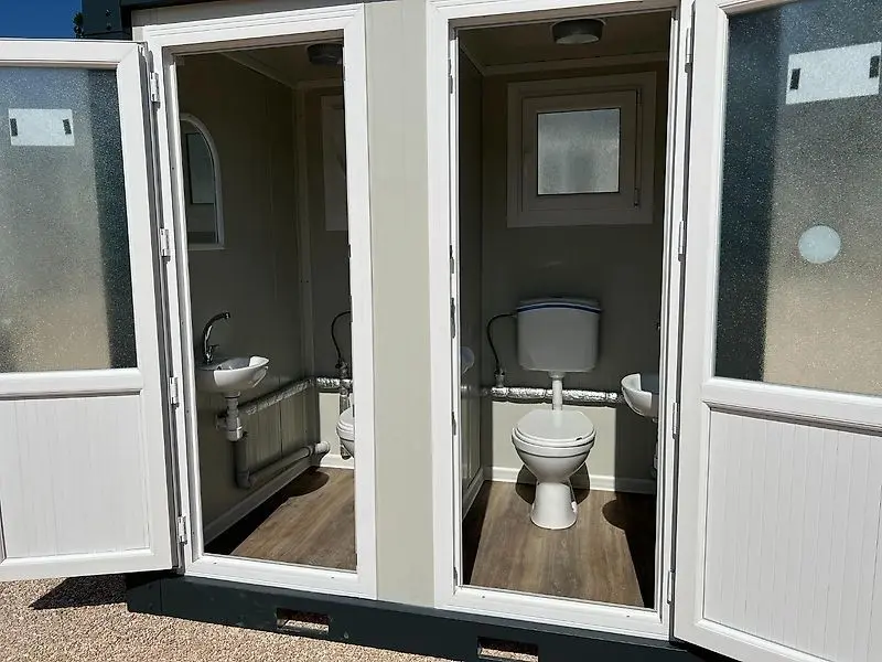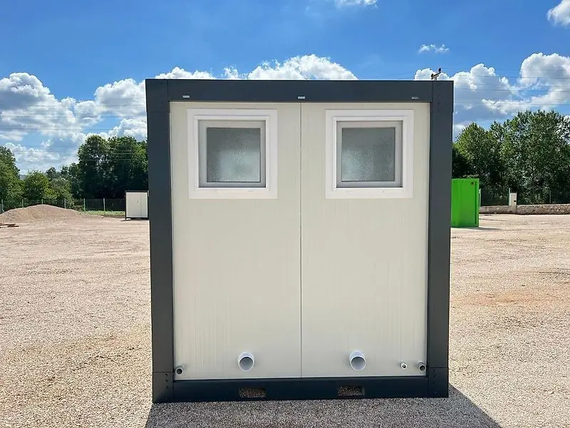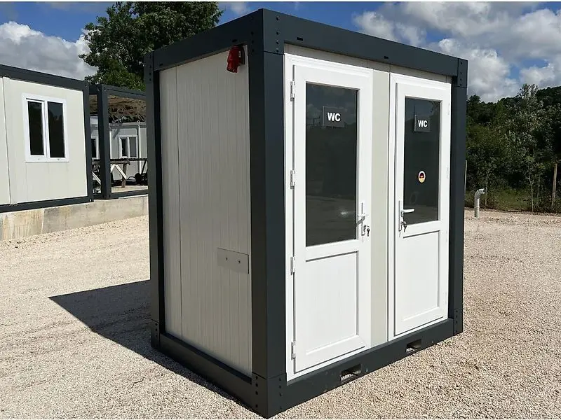 O contêiner sanitário duplo de 120 x 220 cm é uma solução compacta e funcional para necessidades sanitárias temporárias em canteiros de obras, eventos, festivais ou locais remotos . Projetado para acomodar dois usuários simultaneamente , ele combina privacidade, conforto e segurança em um módulo fácil de transportar e instalar.