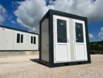 Fabricado com materiais robustos e duráveis , este contêiner é estanque, resistente às intempéries e projetado para uso intenso. Ele oferece uma solução prática para locais que exigem instalações sanitárias modulares e confiáveis.