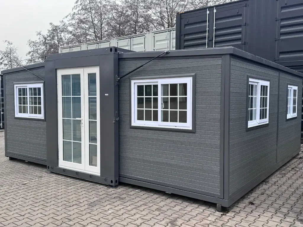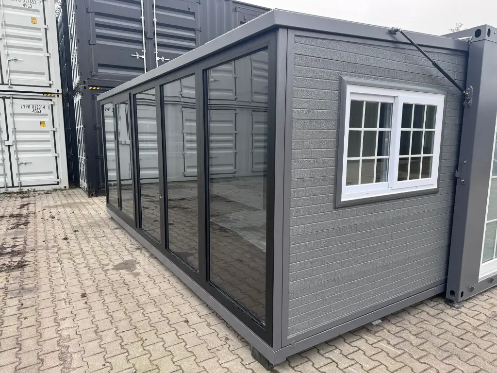 Casa pré-fabricada moderna e extensível de 5,5 x 6 m com guarda-roupa, design requintado e moderno, para morar e trabalhar.