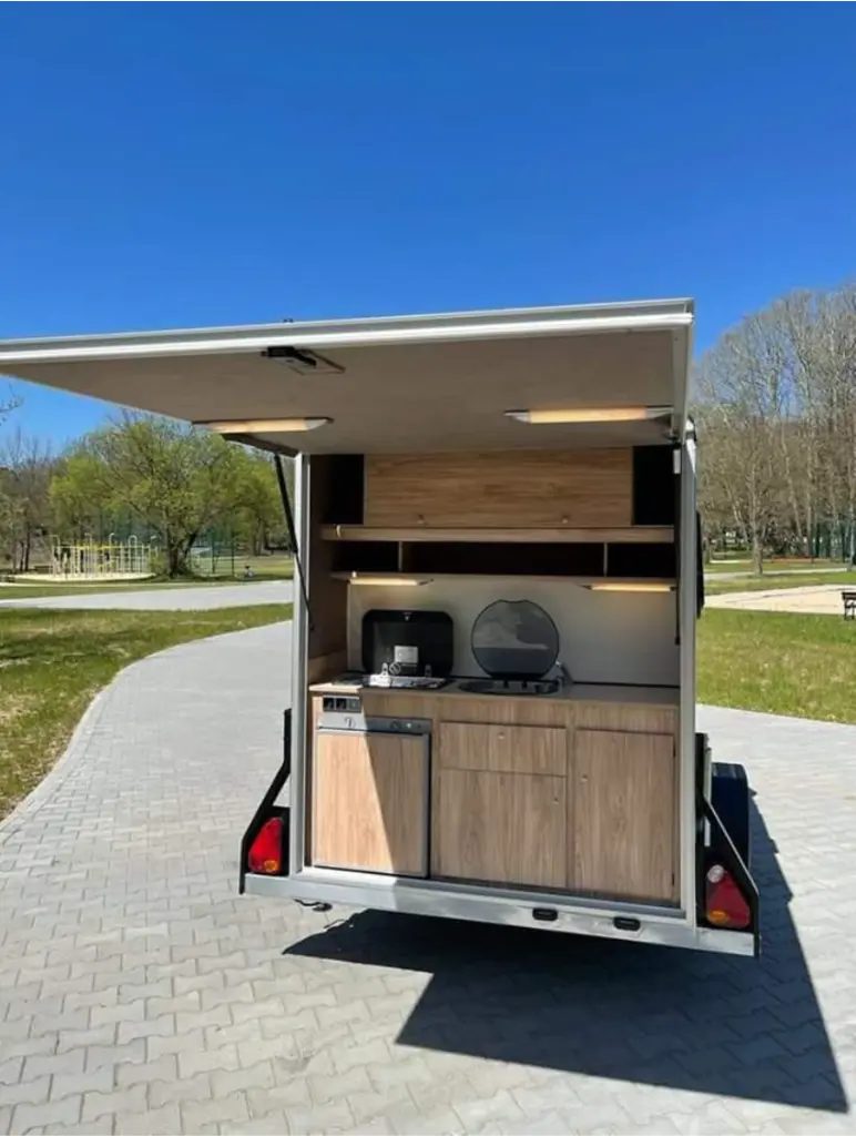 Versatilidade : pode ser usado tanto como reboque utilitário quanto como caravana de lazer.