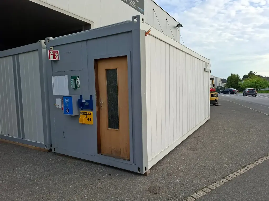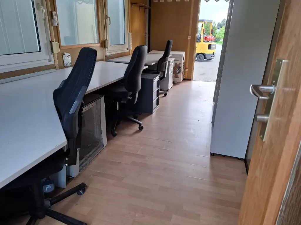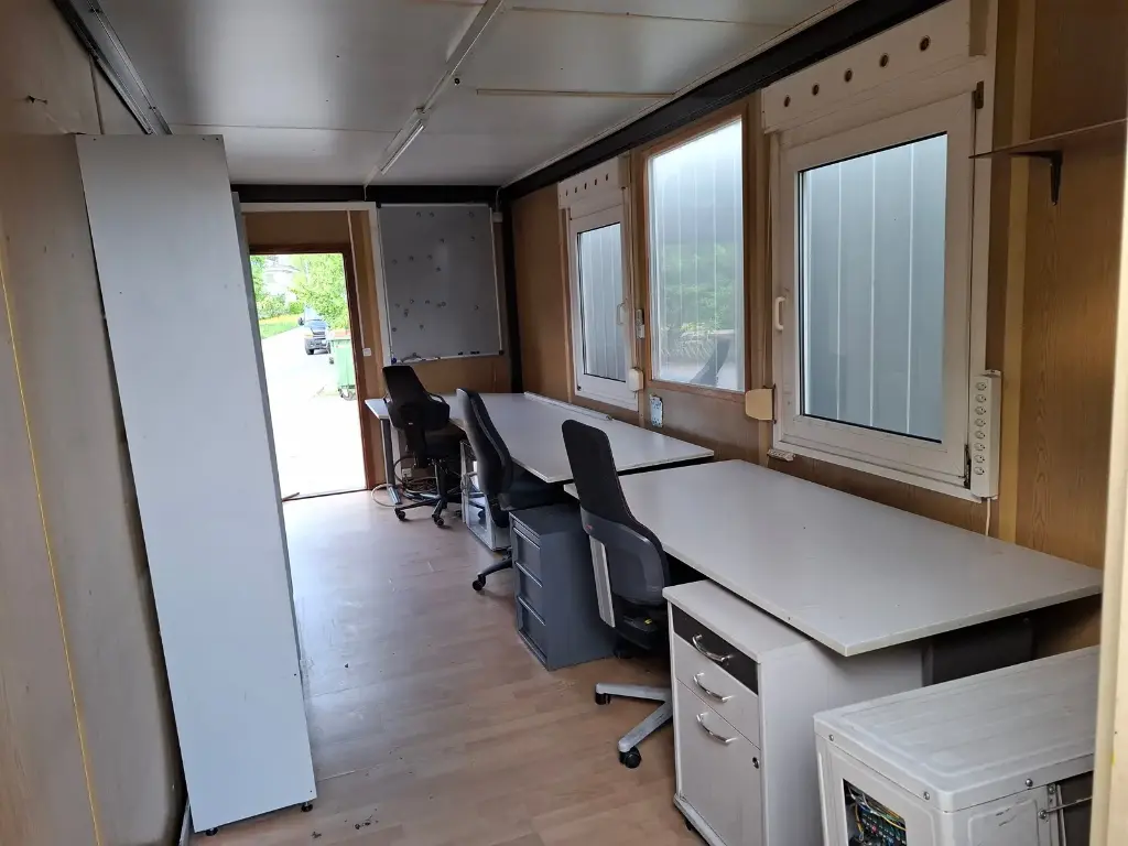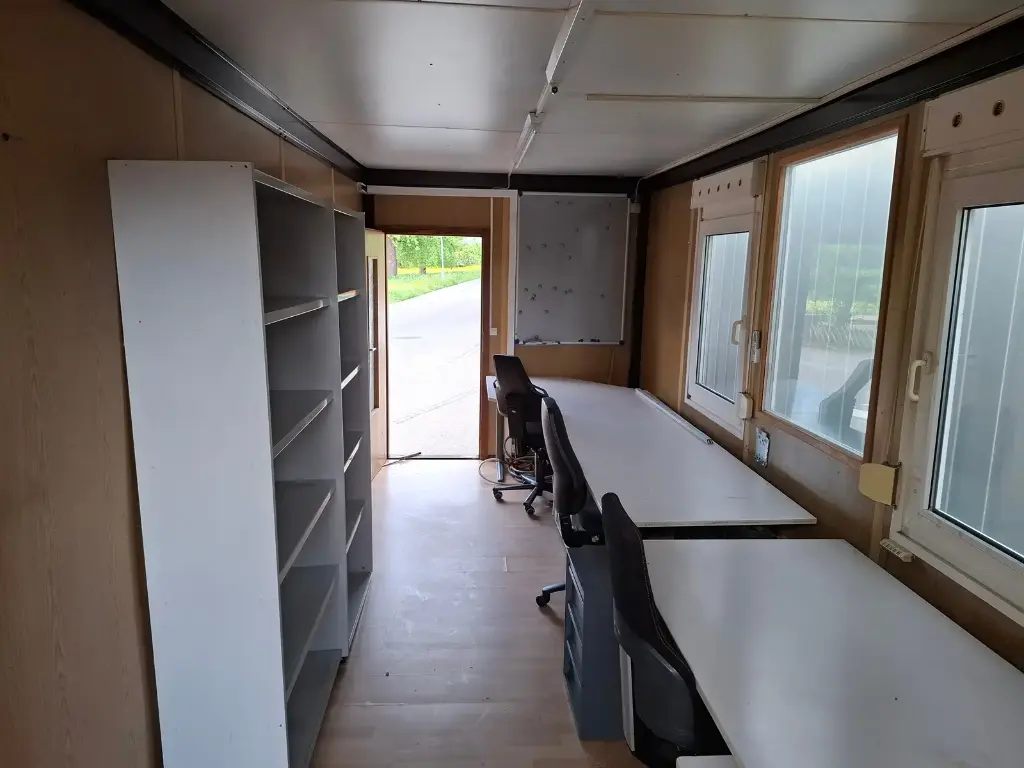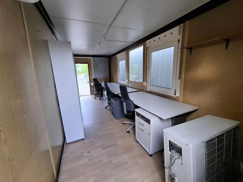 Contêiner modular Widmer , ideal para escritório temporário ou espaço administrativo, disponível usado. Perfeito para canteiros de obras, instalações industriais ou instalações temporárias a um custo reduzido.